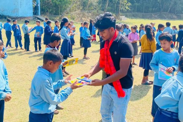 हजुरआमाको सम्झनामा युवा मनोज डागिले गरे बिधालयमा शैक्षिक र खेलकुद सामाग्री बितरण