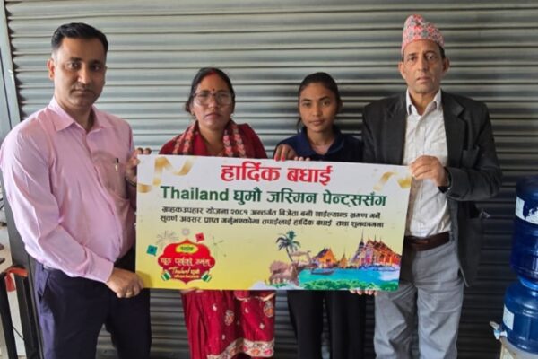 जस्मिन पेन्ट्स ग्राहक उपहार योजना: अमाला देवी रोकायाले जितिन् थाइल्याण्ड भ्रमण, ईश्वर सुवेदीले पाए स्मार्ट वाच कोहलपुर-११ स्थित नवीन ट्रेडर्सबाट जस्मिन पेन्ट्स खरिद गर्ने अमाला देवी रोकाया (बैजनाथ-१) ‘थाइल्याण्ड घुमौं जस्मिन पेन्ट्ससँग’ ग्राहक उपहार योजनाको भाग्यशाली विजेता बन्न सफल भएकी छन्। यो योजनाअन्तर्गत उनले थाइल्याण्ड भ्रमणको अवसर प्राप्त गरेकी हुन्। ग्राहकहरूलाई आकर्षक अफर प्रदान गर्दै…